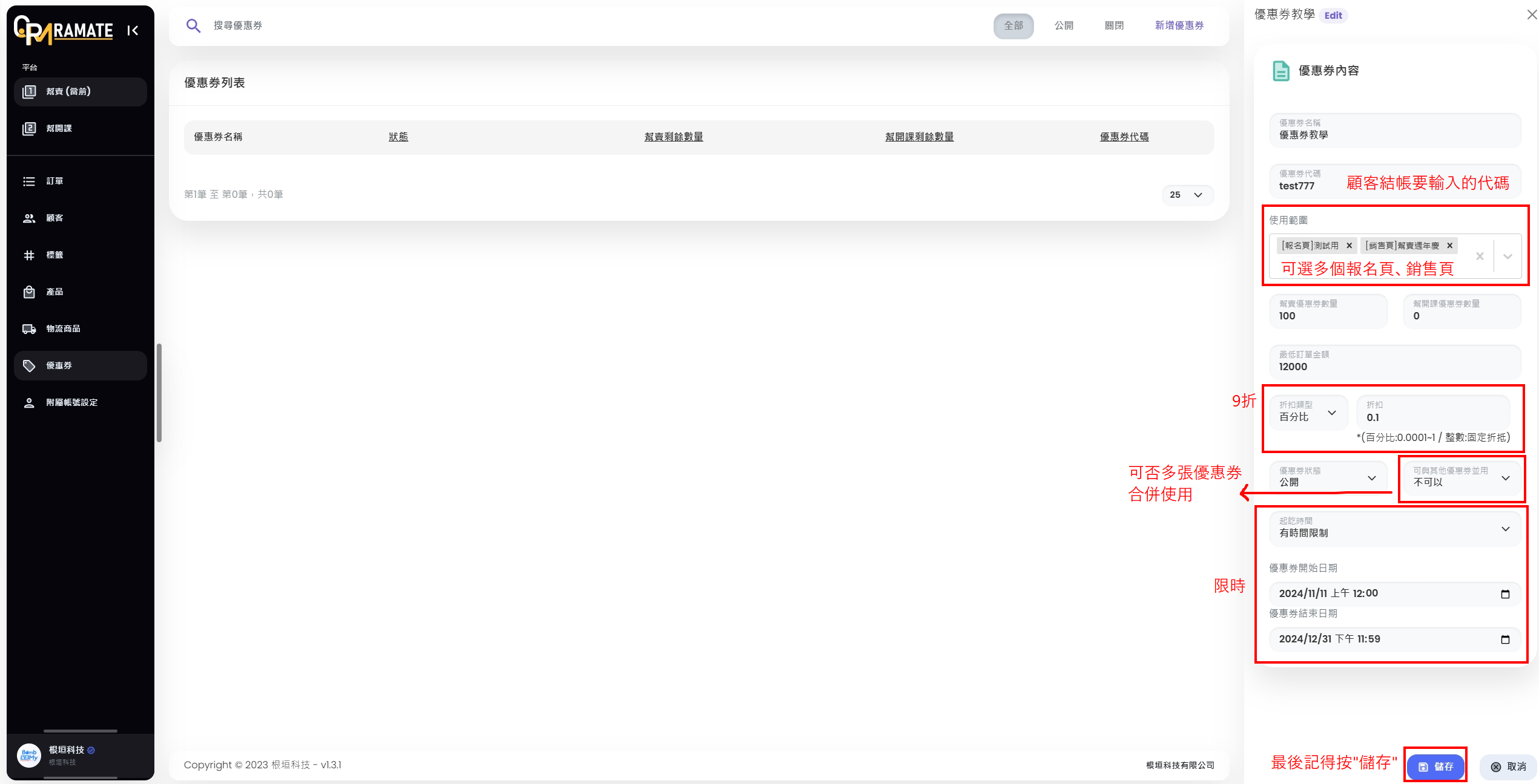CRM優惠券功能