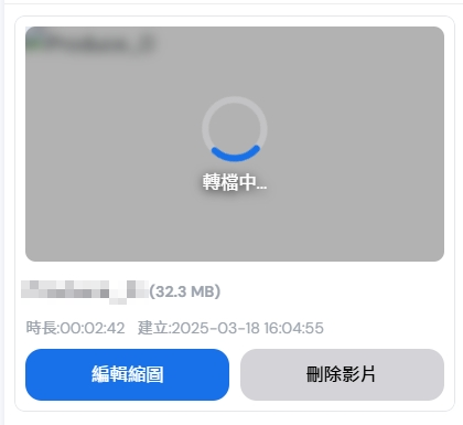 7、轉檔完畢後,影片就可以「編輯縮圖」、「刪除影片」。