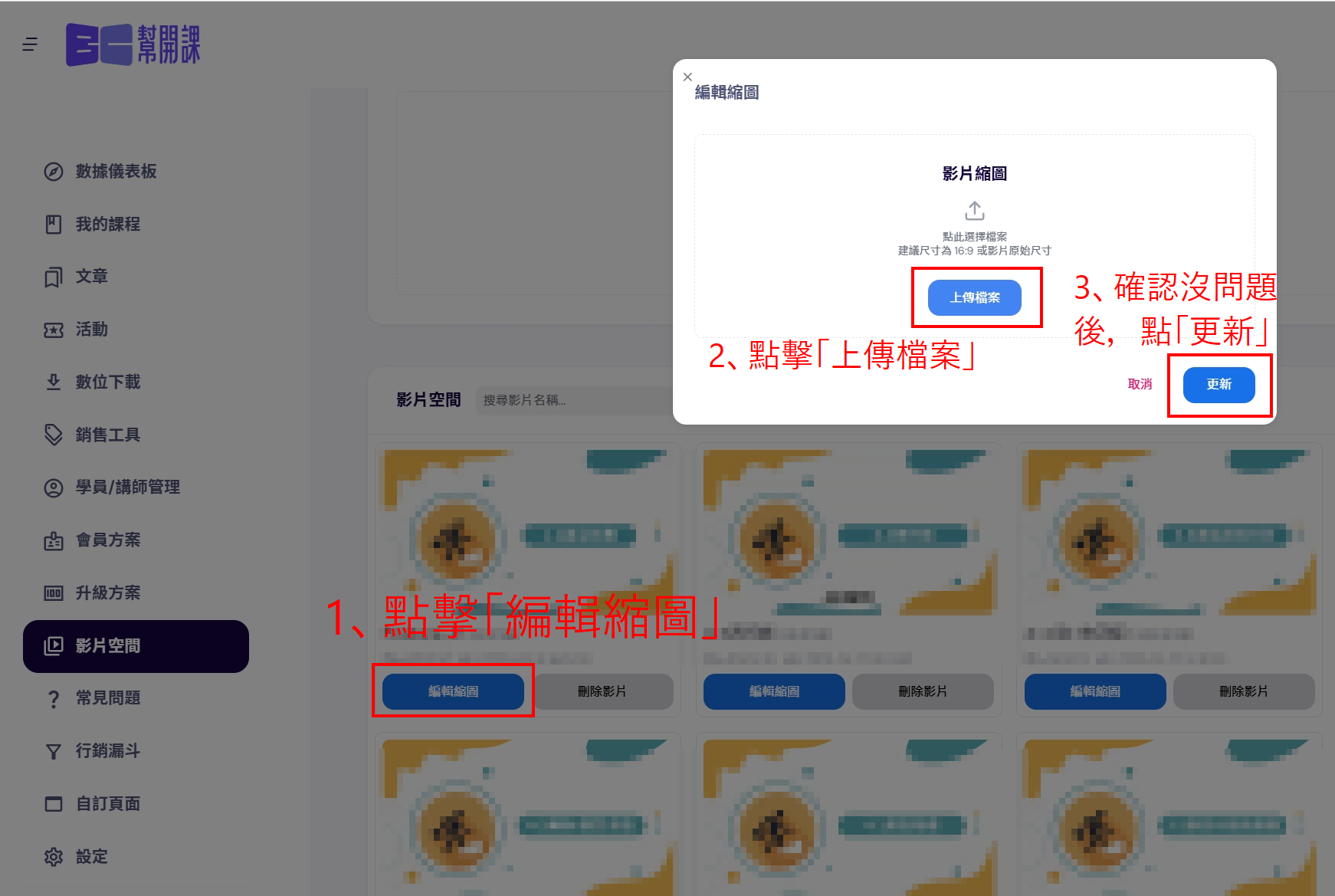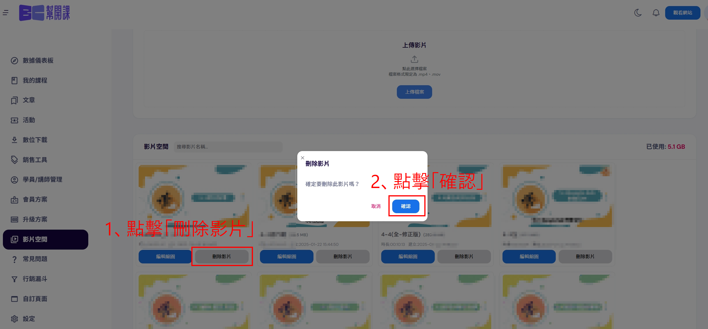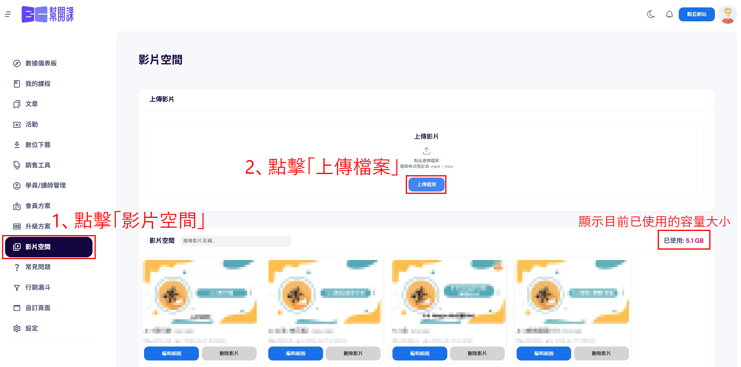 課程影片上傳、管理