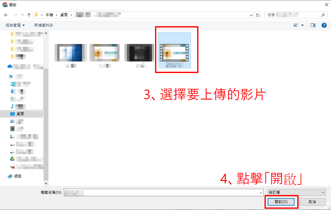 2、點擊畫面中間「上傳檔案」,並選擇要上傳的影片。