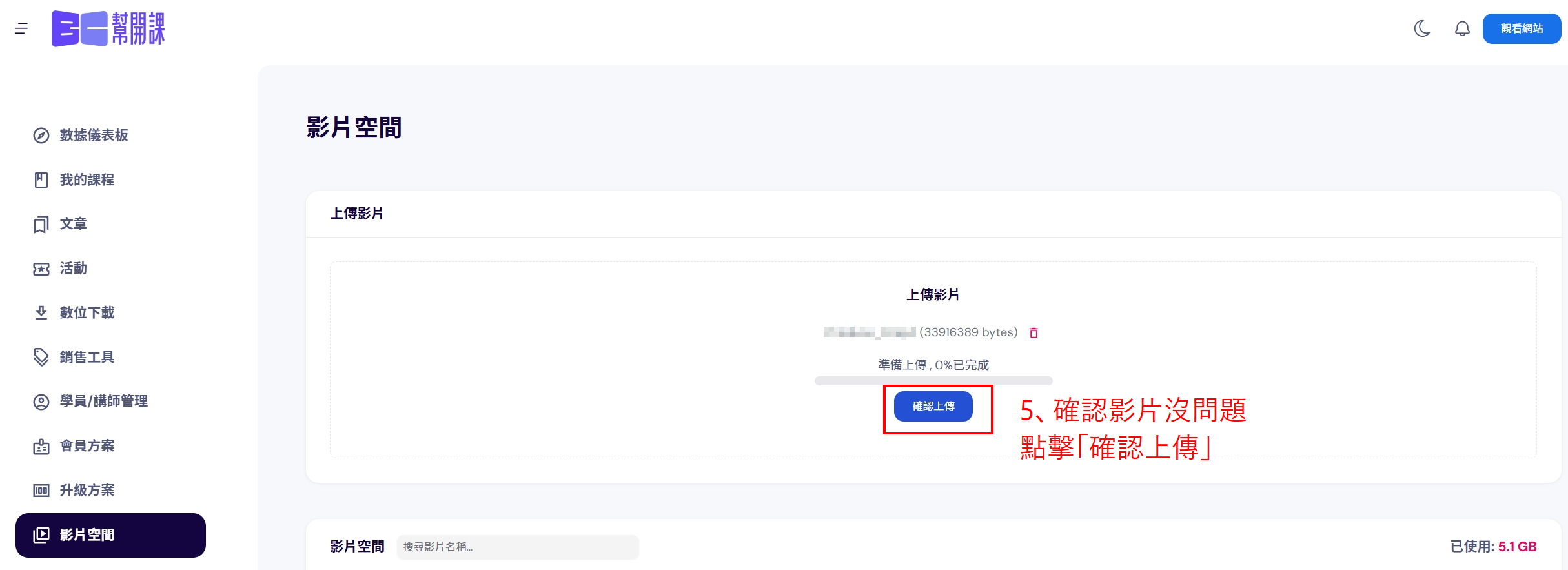 5、確認影片沒有問題後,點擊「確認上傳」。