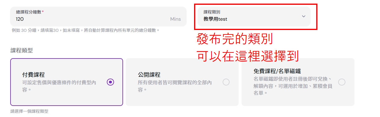 4、發布完「課程類別」之後,就可以到「課程資訊」選擇類別囉!