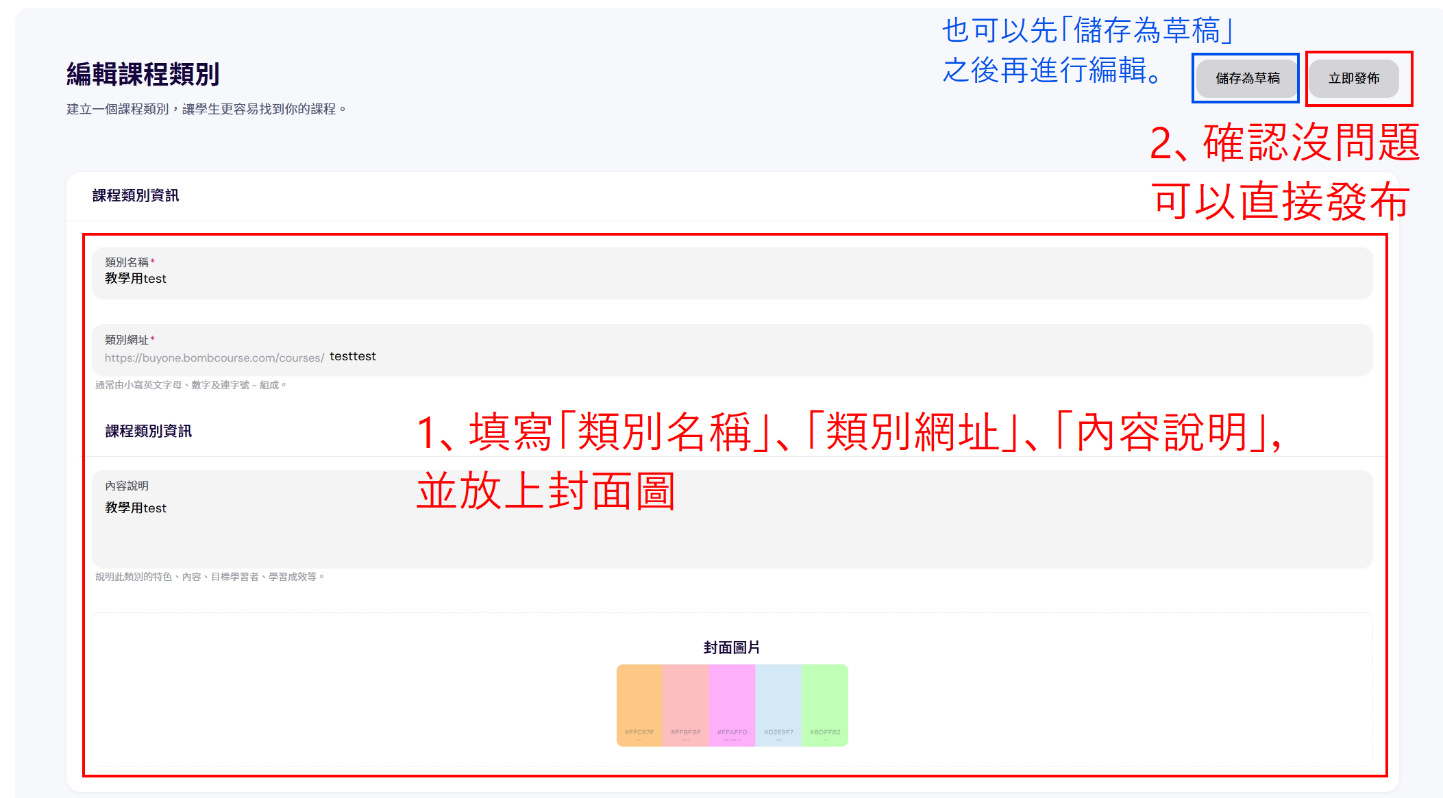 3、填寫「類別名稱」、「類別網址」、「內容說明」,並放上「封面圖片」。